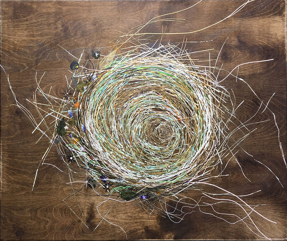 "X 36", mixed media on paper, mounted and finished on 1 1/2" Birch cradleboard.